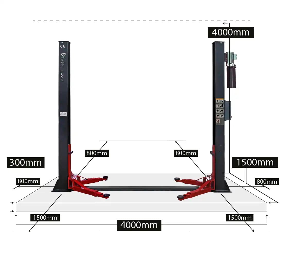 REDATS L-220 / L-220F är en automatisk tvåpelarlyft med en lyftkapacitet på 4 ton som erbjuder en smidig och effektiv lösning för fordonsservice. Den passar både personbilar och lätta transportfordon och är utrustad med flera säkerhetsfunktioner för trygg och stabil användning i verkstaden. Finns i två utföranden: 400 V (3-fas) eller 230 V (1-fas). 10 liter gratis hydraulolja HL32 ingår.
