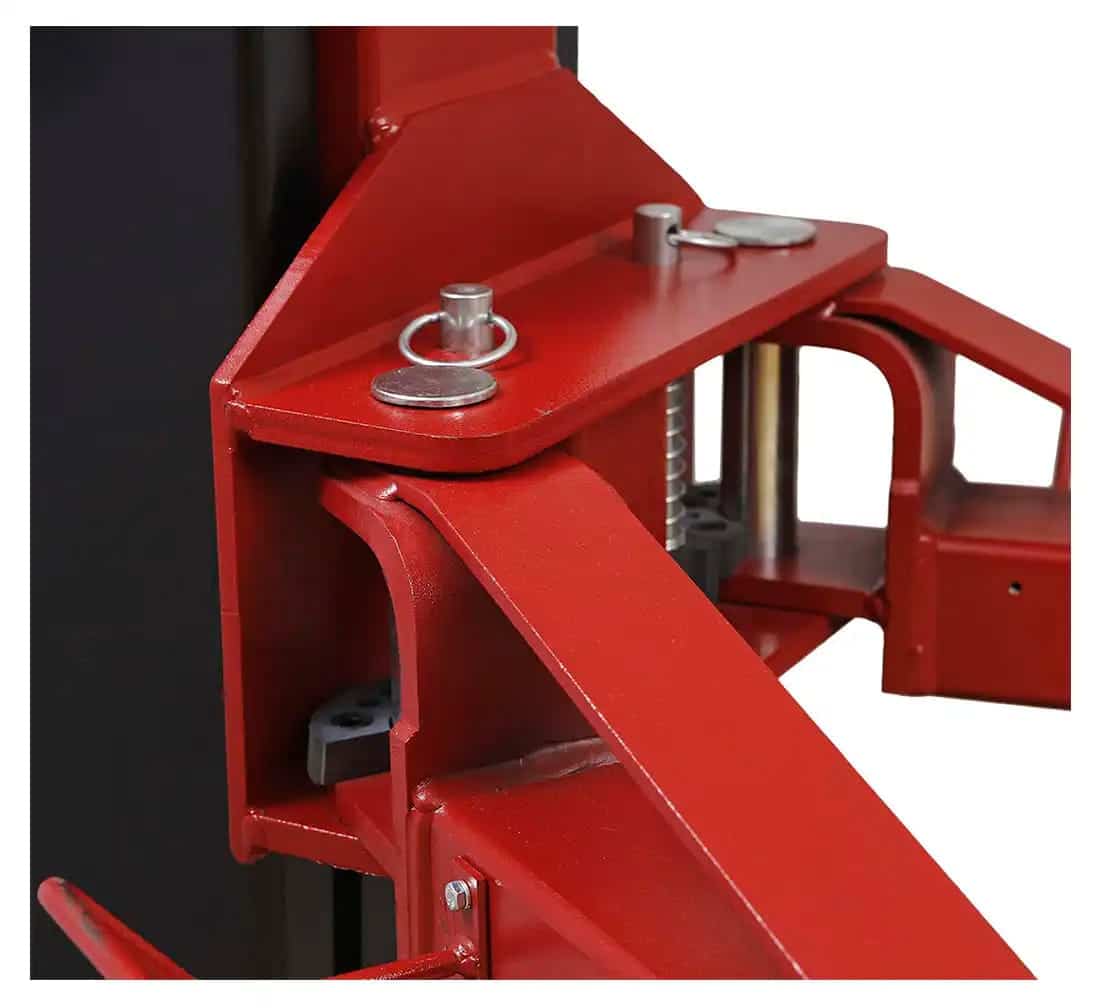 Båda pelarna är utrustade med elektromagneter som automatiskt frigör säkerhetslåsen när sänkningsknappen aktiveras. Detta gör arbetet snabbare, mer ergonomiskt och effektivt i den dagliga verkstadsdriften.