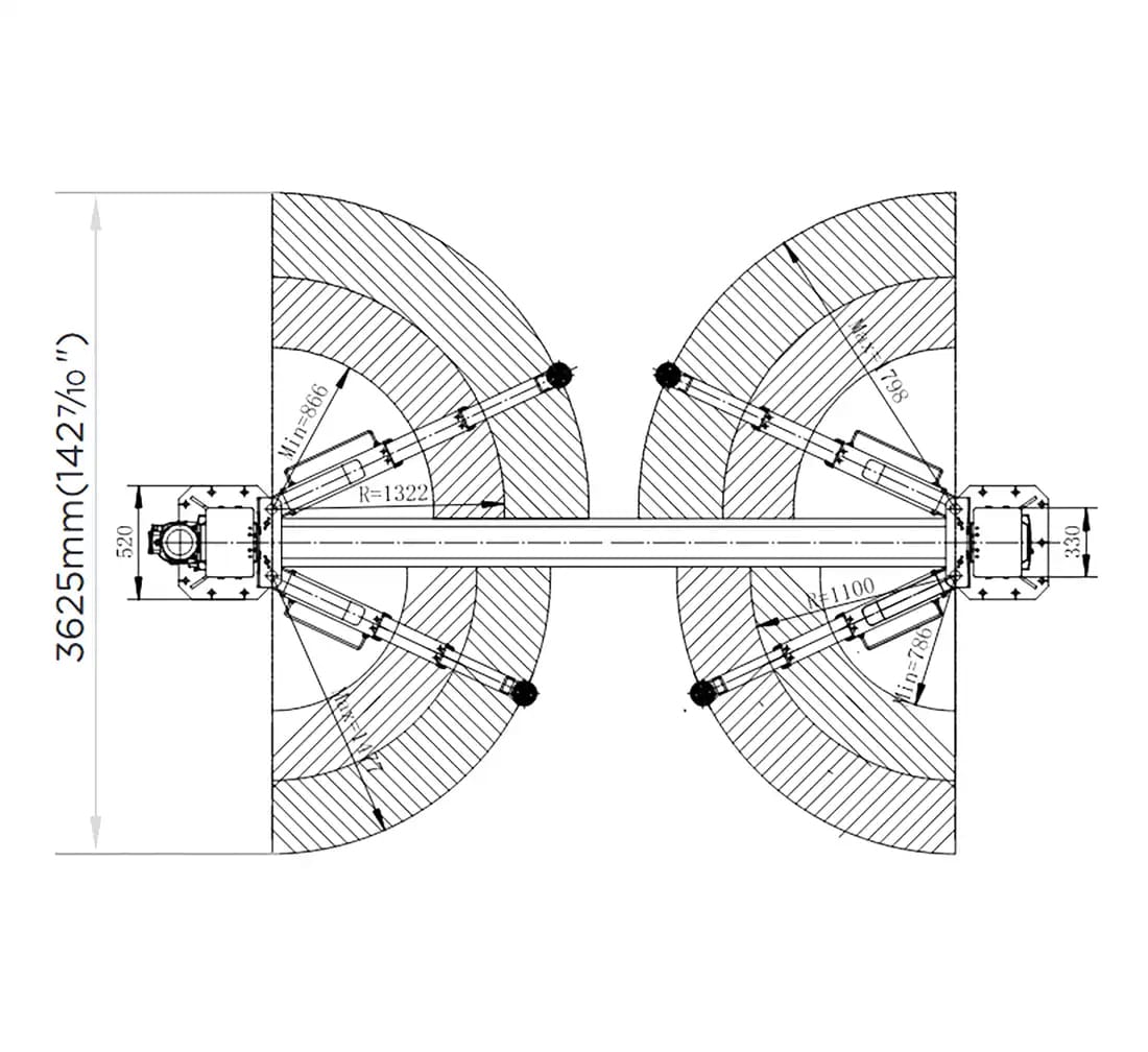 Med en lyftkapacitet på 5000 kg klarar REDATS L-280 Pro även tyngre fordon utan problem. De teleskopiska lyftarmarna kan justeras mellan 786 och 1798 mm och kan ställas in i flera lägen, vilket gör det enkelt att anpassa lyften efter olika fordonsmodeller.