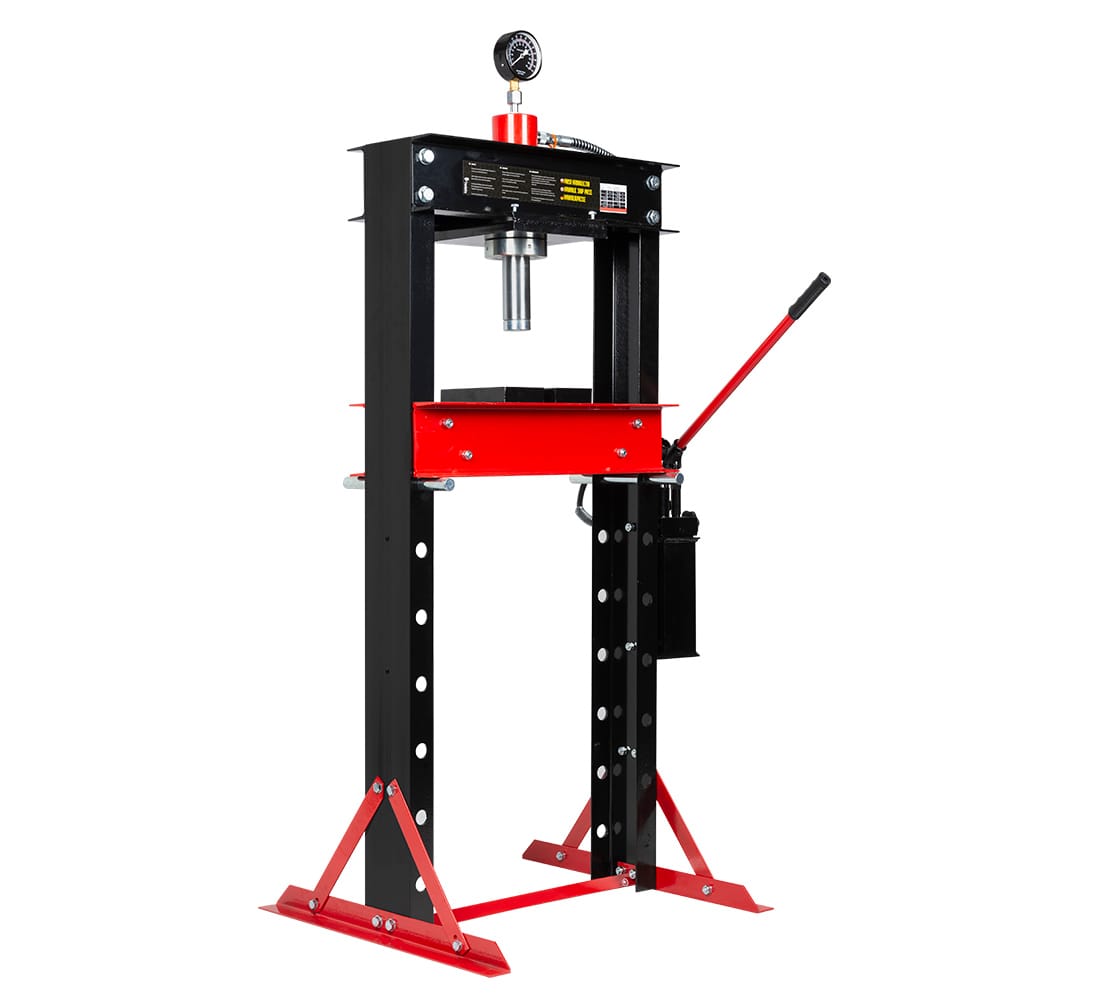 Med en kapacitet på hela 30 ton och en dubbelpump som möjliggör både snabb och kontrollerad pressning klarar denna verkstadspress allt från lager och bussningar till axlar och andra tunga delar.