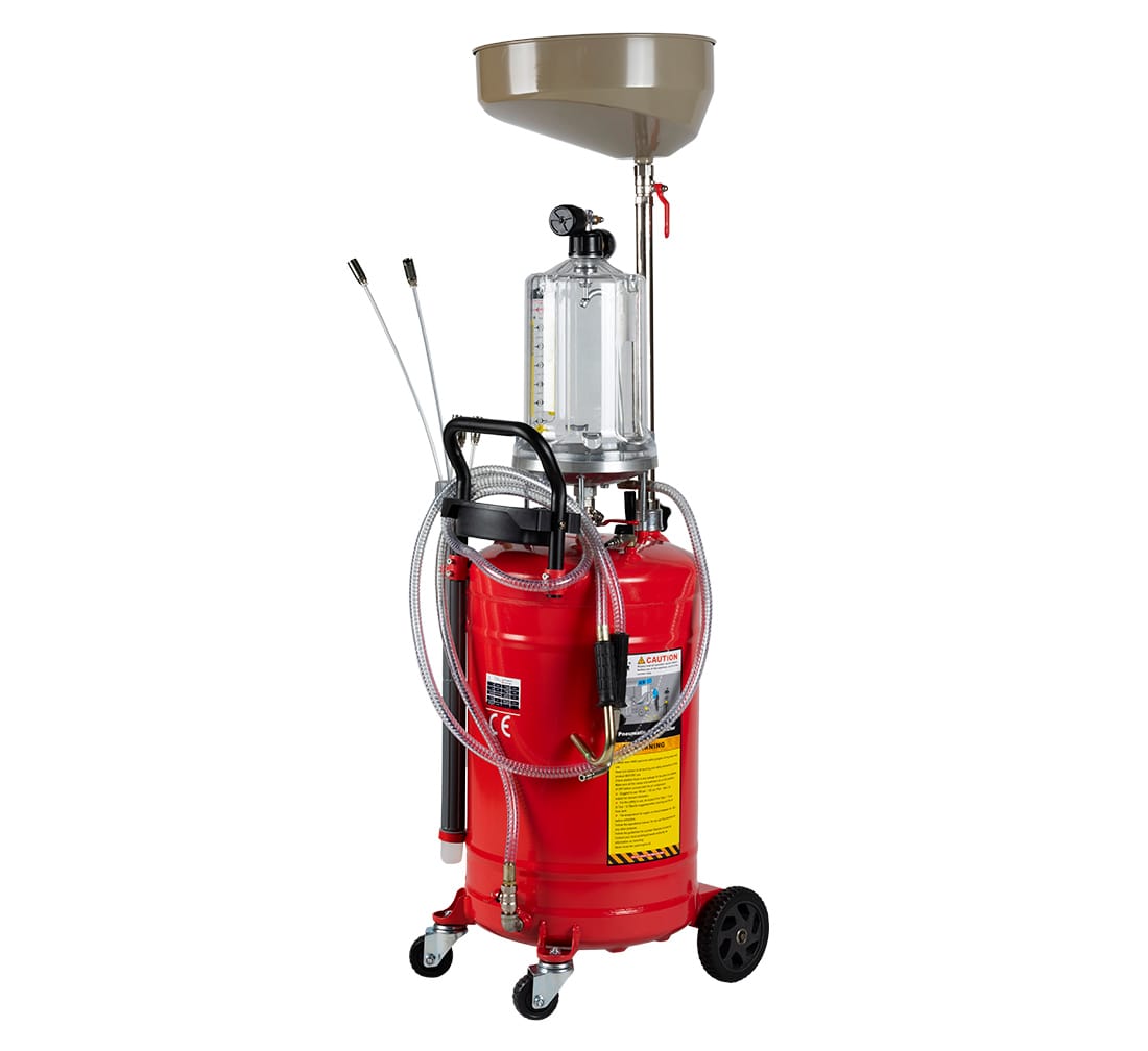 Den stora uppsamlingstanken på 80 liter gör att flera oljebyten kan utföras innan tanken behöver tömmas.
