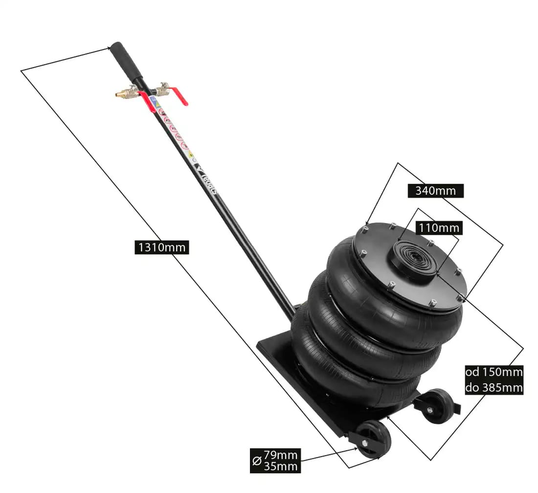 REDATS Pneumatisk Domkraft 4,5T är en kraftfull luftdomkraft med luftkuddar som snabbt och säkert lyfter fordon upp till 4,5 ton.