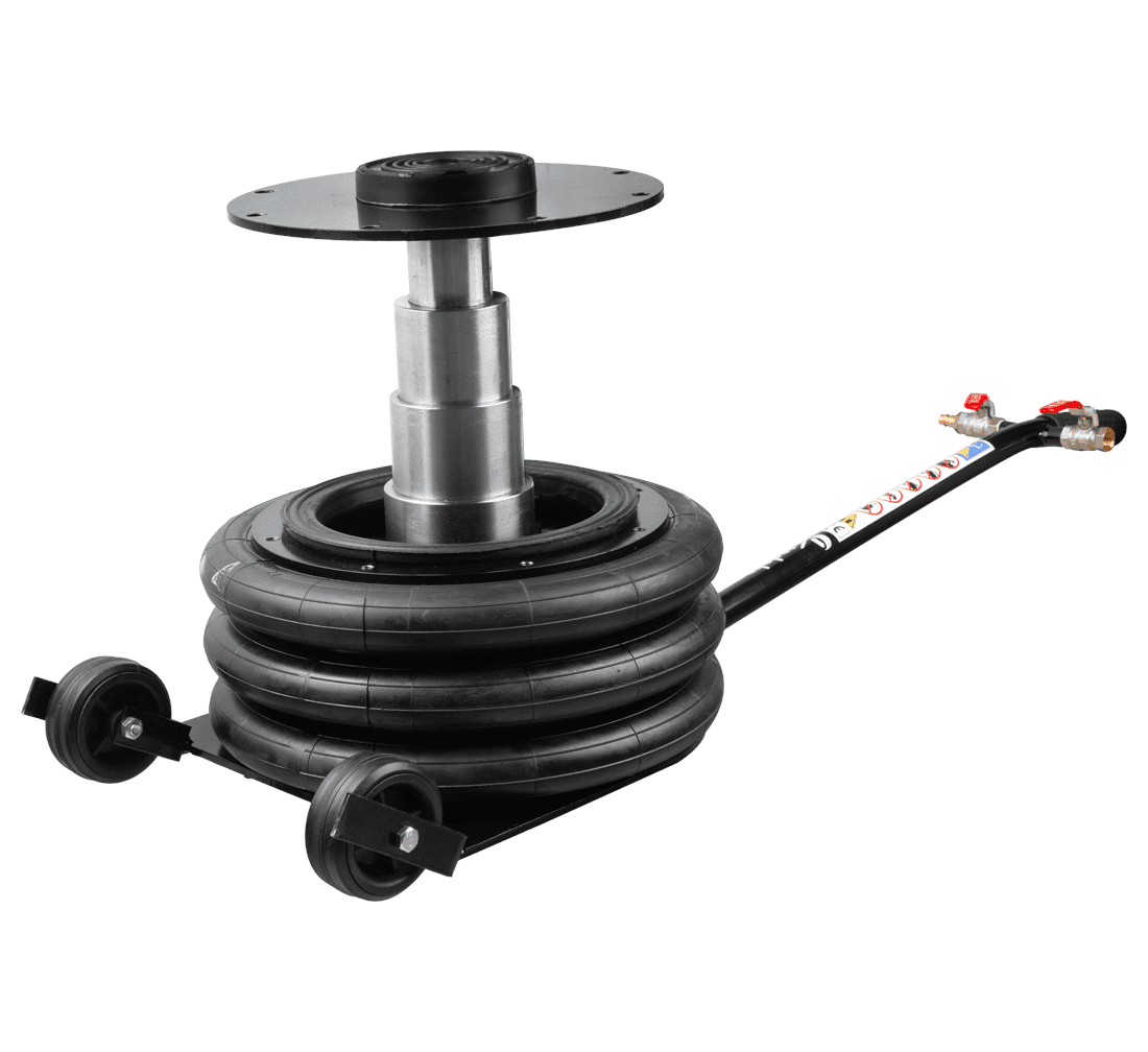 Domkraften är tillverkad av slitstarka material och har förstärkta luftkuddar som klarar hög belastning och intensiv användning.
