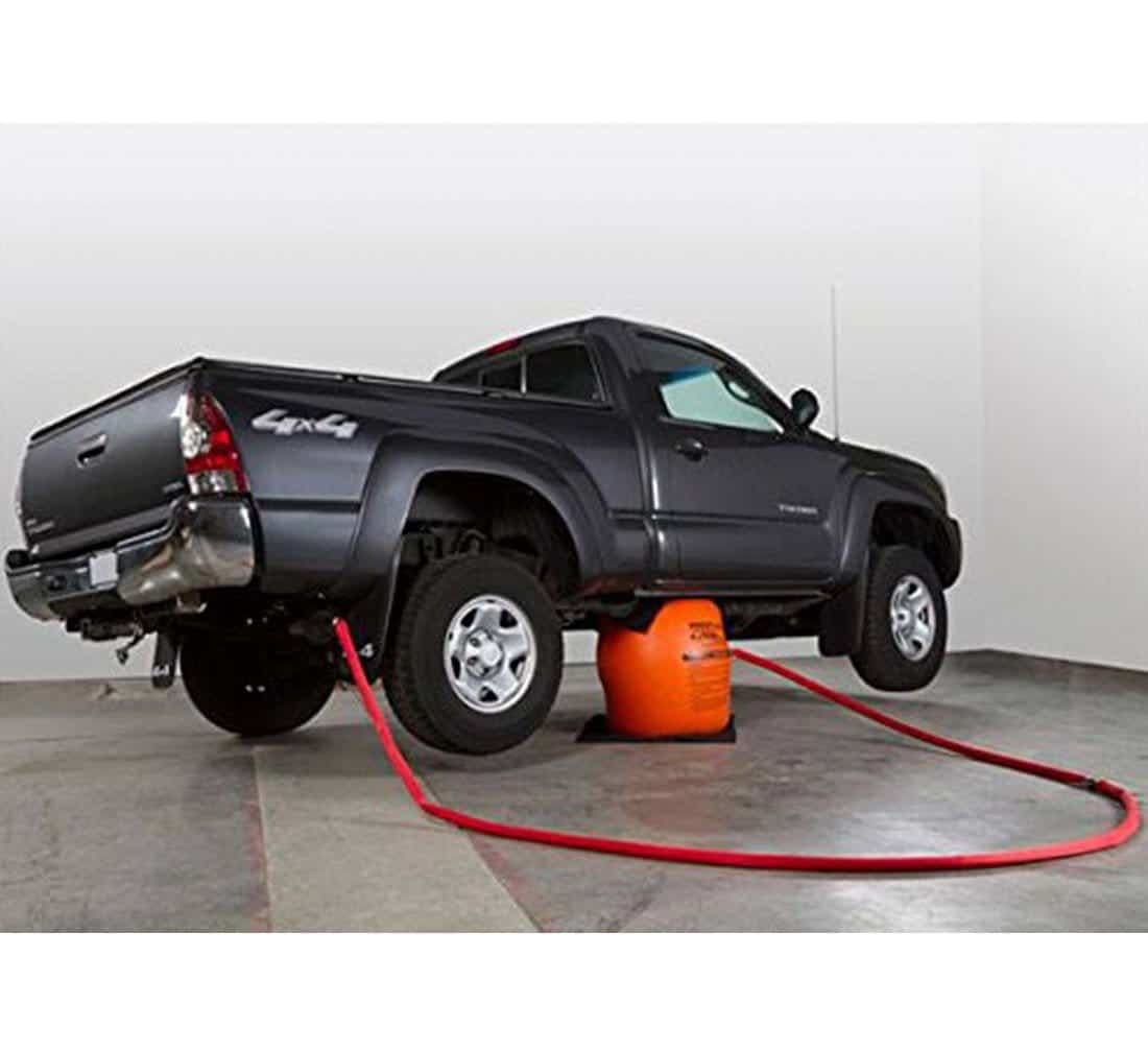 Den uppblåsbara luftkudden placeras enkelt under fordonet och fylls med avgaser från bilen eller med en extern kompressor.