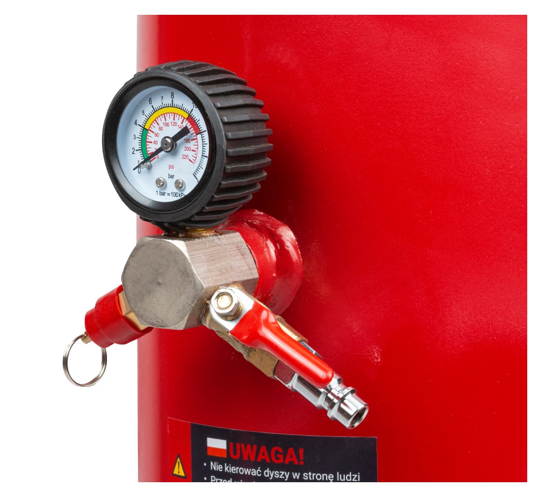 Chockluftaren är utrustad med säkerhetsventil som skyddar mot övertryck och bidrar till trygg användning i verkstadsarbete.