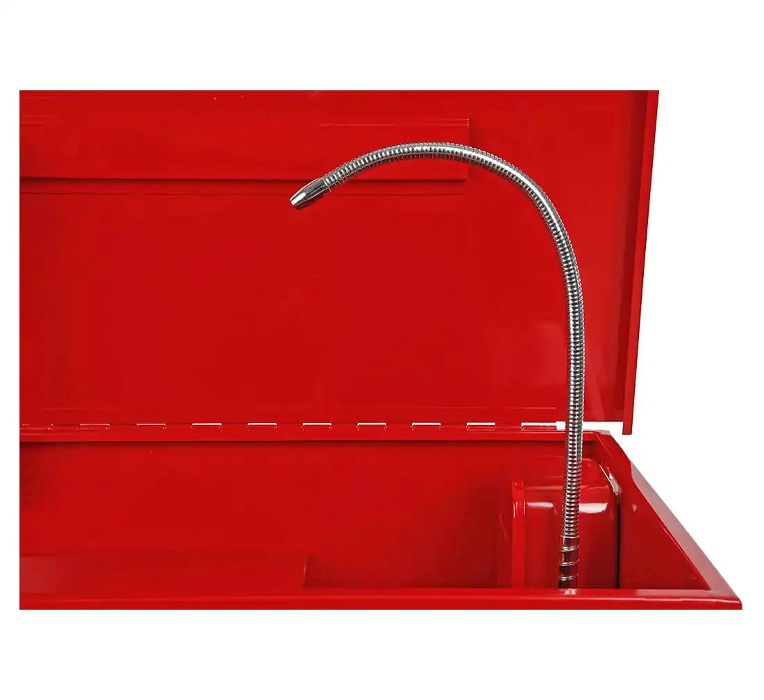 Med cirkulerande rengöringssystem, flexibel slang och borste gör den det enkelt att ta bort olja, fett och smuts i verkstadsmiljö.